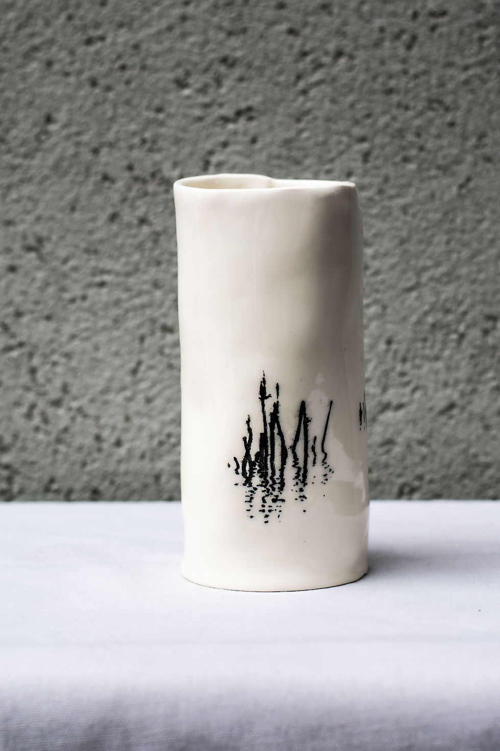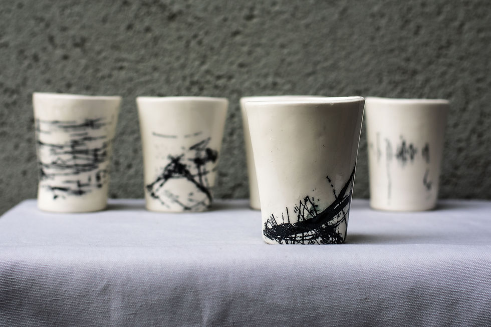 קולקציה דרמטית של שחור ולבן, המוסיפה לשדר רכות בזכות החיתוך הלא אחיד של הכלים, הפיסוליות שנוצרה בתהליך הקיפול, ובאמצעות משיכות המכחול הרכות, שמדגישות את הזמניות והרגע החולף.